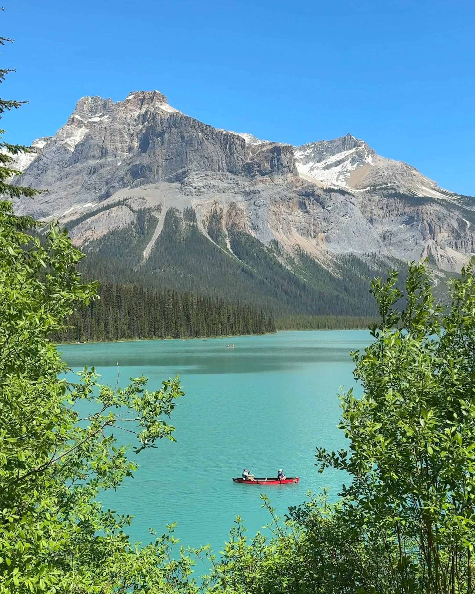 One of Yoho National Park's crown jewels! Famous for it’s beautiful scenery, vibrant teal colored water and reflections of the surrounding mountains. Emerald Lake is another great spot for canoeing or you can even hike the Emerald Lake Loop, a flat, easy 3.2 mile hike perfect for all skill levels! Although it can be less busy than more popular places like Lake Louise, it can still get quite crowded especially during peak season so make sure to get there early to find a good parking spot.